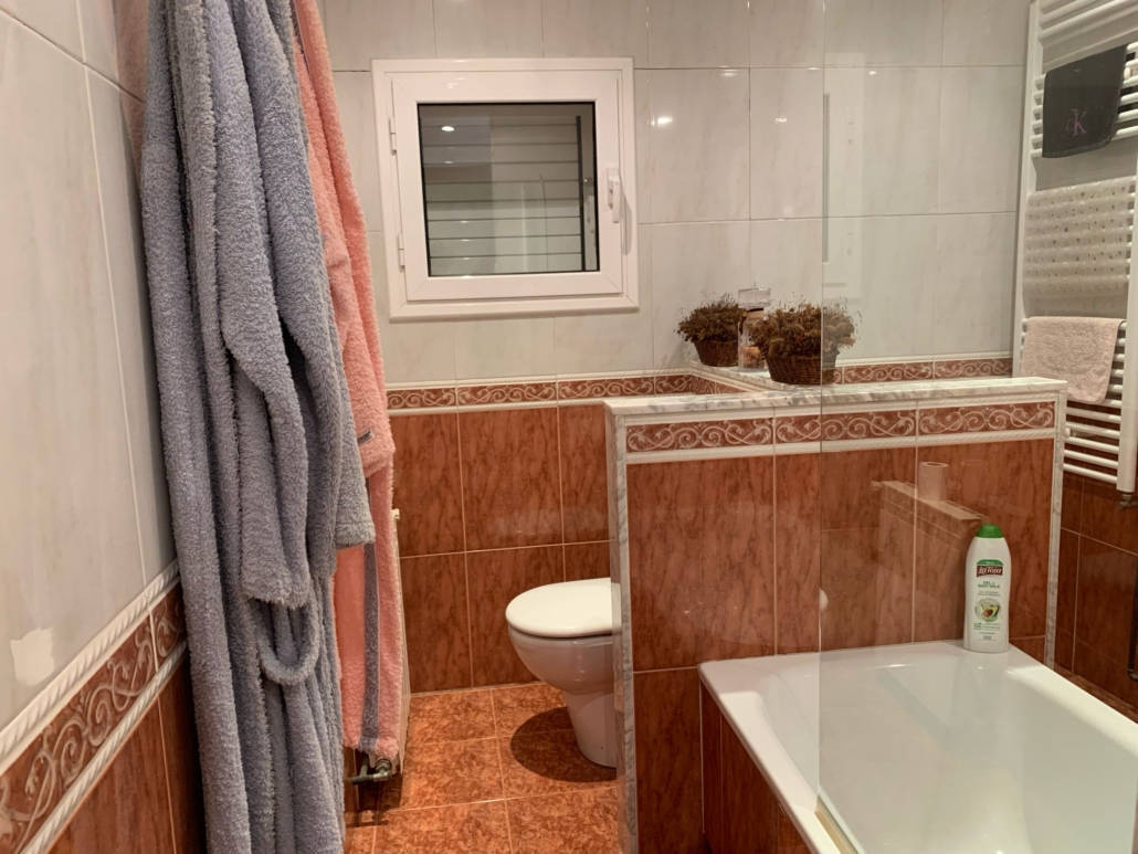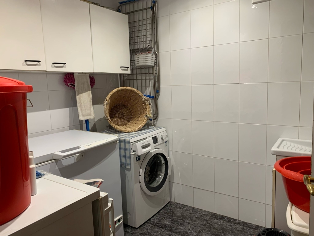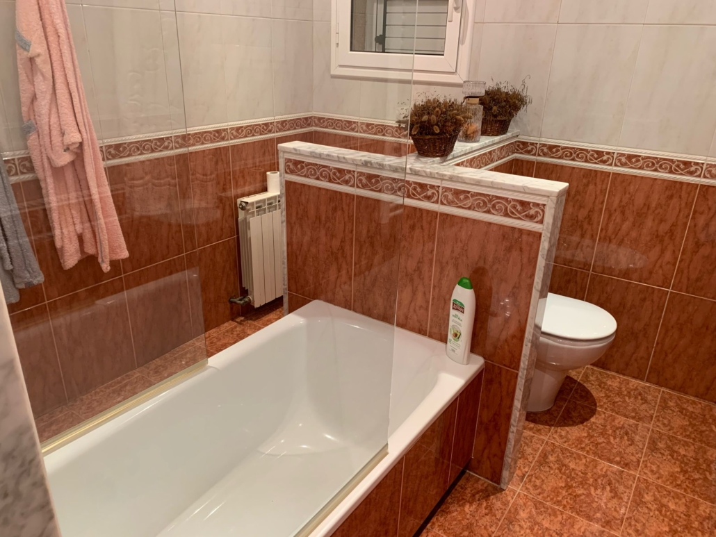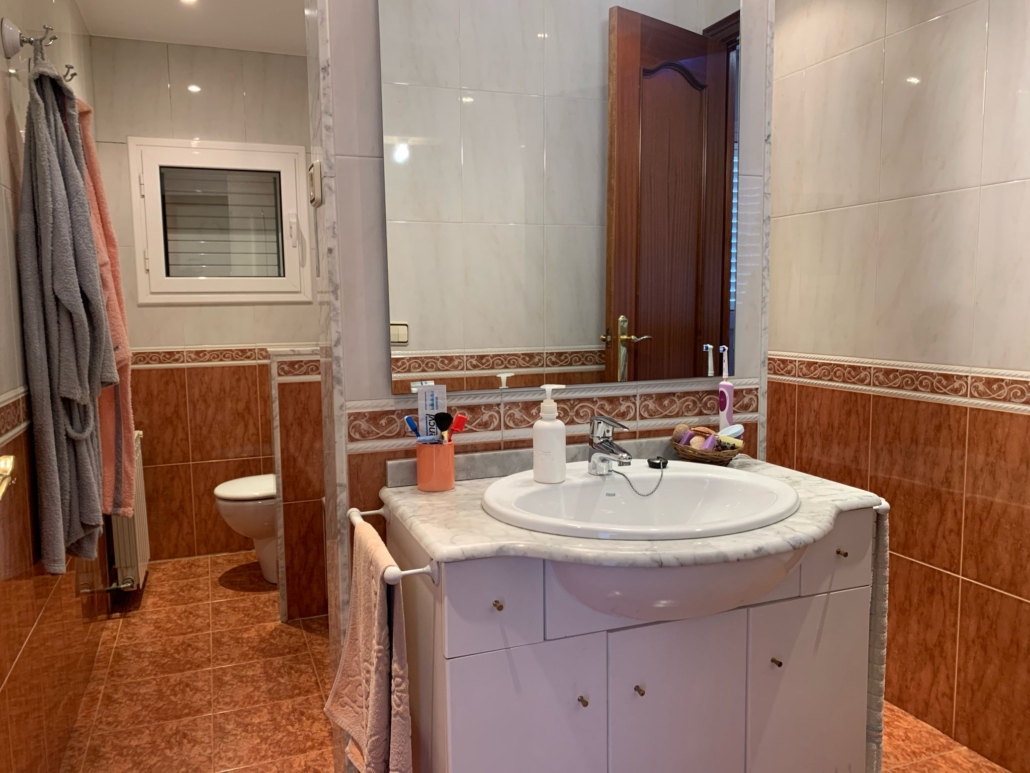 Desde el interior del garaje accedemos a la vivienda donde tenemos un gran recibidor con armario empotrado, una habitación suite (baño con bañera), un aseo con bidé y un lavadero.