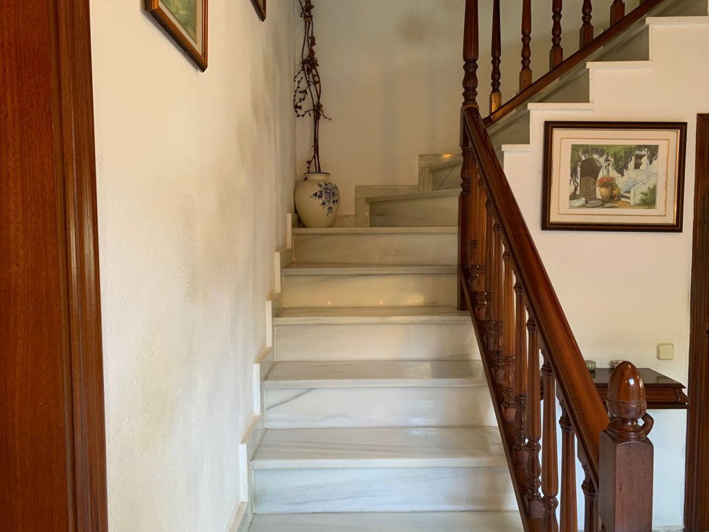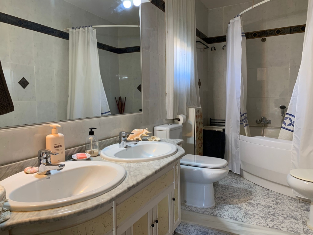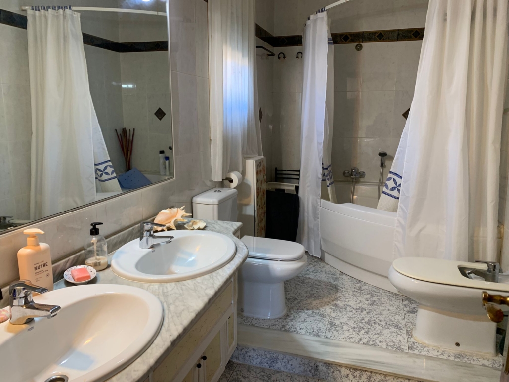 Subiendo las escaleras, encontramos 1 habitación suite muy amplia y luminosa con baño de doble lavabo y bañera ovalada, además tenemos 2 habitaciones dobles (una con balcón) y 1 habitación individual conectadas todas ellas por un pasillo.